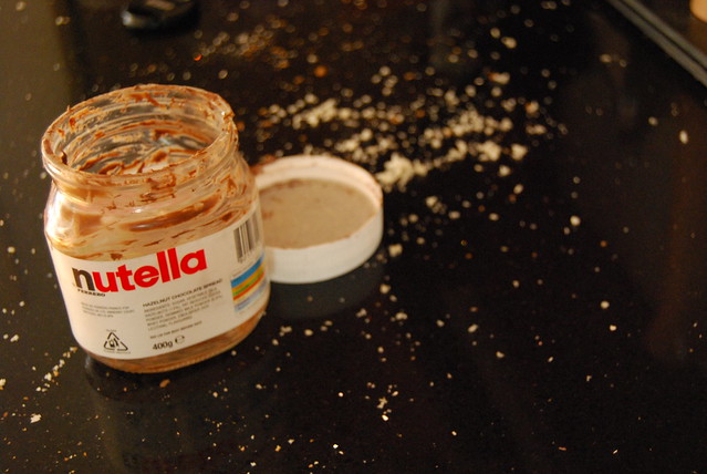 On impatient days though, we’d maniac-ly stab into the jar with a spoon or knife without waiting for it to melt. On one of these stabbing sessions, we discovered that since the jar was glass, it was okay to warm it in the oven. On one such occasion, I removed the lid, kept the jar in the oven and went away. Well, I didn’t blow up the jar, but I did forget to remove the golden foil. So when I returned, there was a layer of charred foil above melted Nutella. For the longest time,  I couldn’t eat Nutella in peace because every time I dipped my spoon in a jar, I would be reminded of the acrid smell of burnt foil. But if people can move on after broken relationships, I figured I too could get over my jar of acrid Nutella.