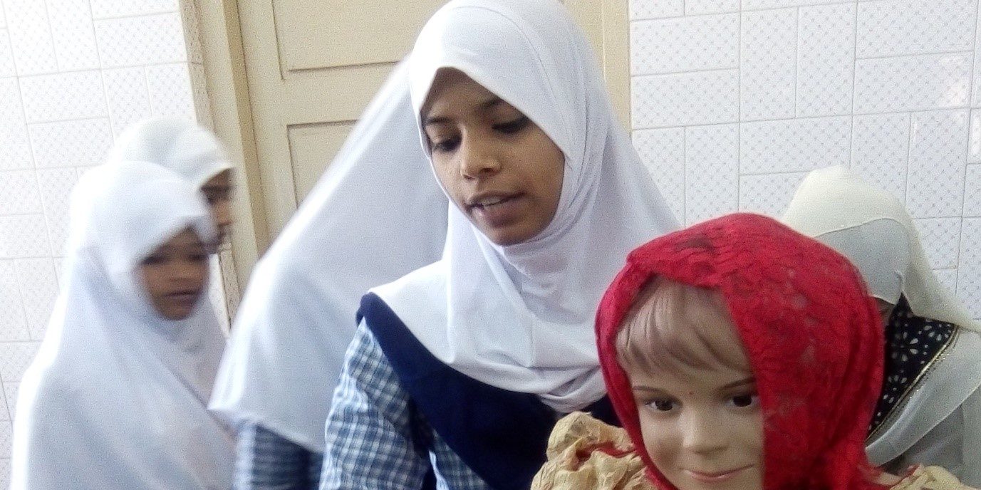 The other intern was being rather unfairly suspicious of our skull cap wearing auto-walla and his meter during our journey there. Eventually we found a huge mosque that looked like something from the Arabian nights hiding behind some trees. Soon enough we found a handful of students in their blue, dark blue and white uniforms gathered up to perform the obligatory march past to welcome chief guests and like every student forced to do march past in the middle of the afternoon, they all looked like they would wilt and fall over.