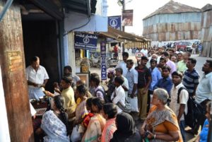 From the auto drivers to the temple samiyaar everybody forms a queue in front of the shop at 5 in the evening. Finally when the shop opens at 6 with a glow of a single yellow light, the workers begin working as fast as mobile phones to attend to the customers.