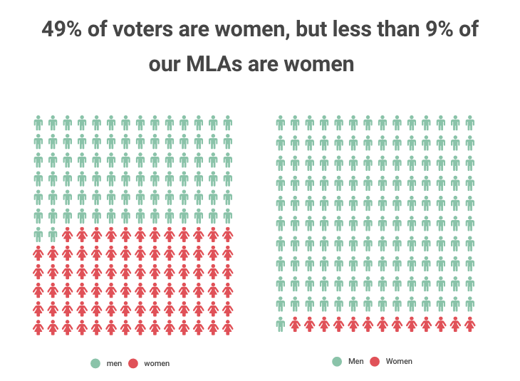 When I studied the Indian Freedom movement in 8th grade, I remember being damn proud that in my country, women got the vote way before women in Switzerland did. However, 71 years down the line and here’s what the statistics still look like:
