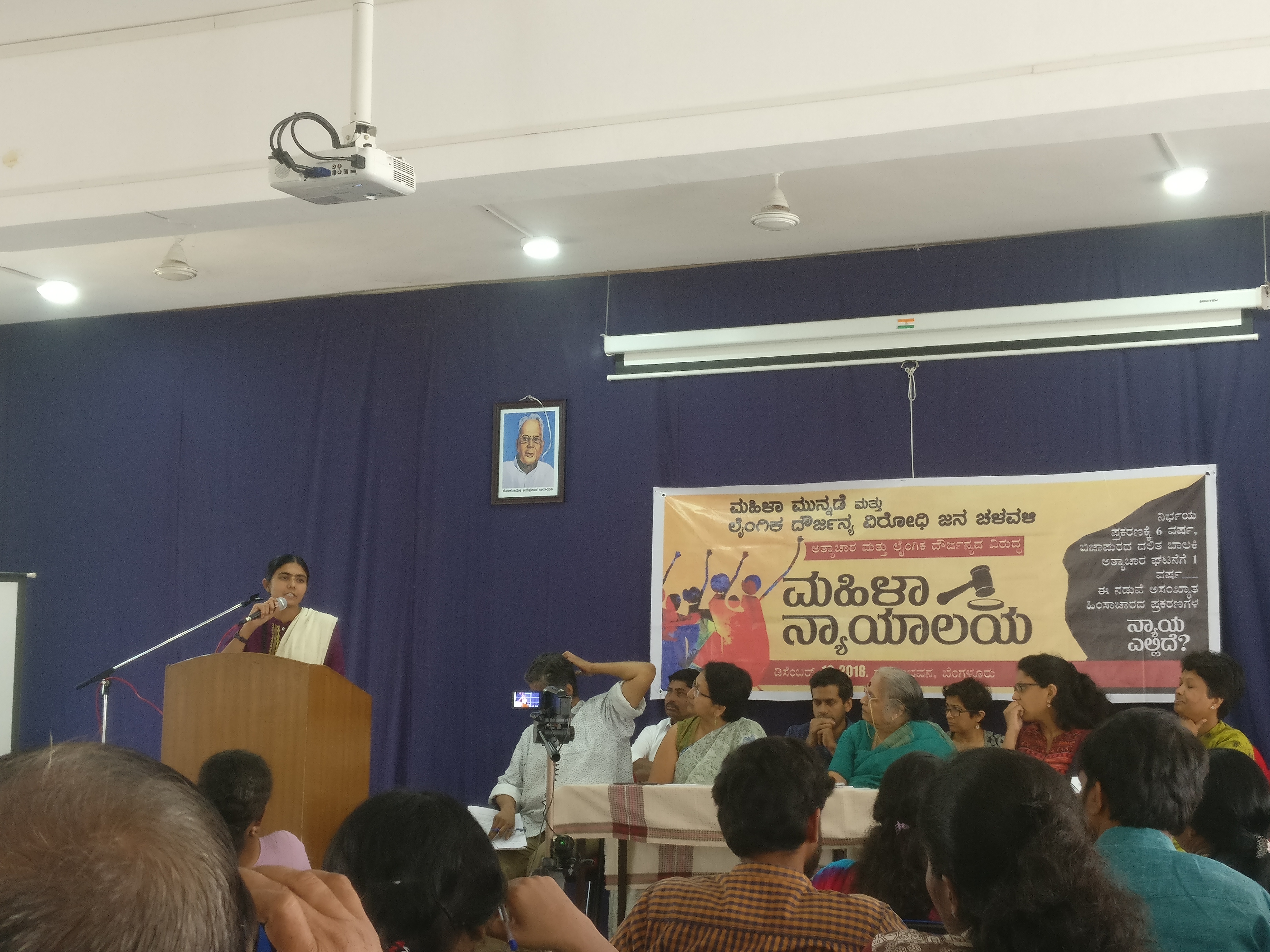 If one looks at the legal system, things aren’t so bleak. At least, on paper. On 16th December, observing six years of the Nirbhaya rape case and one year of the rape of a minor in Bijapur, Mahila Munnade organised a Mahila Nyayalaya (Women’s Court) in Gandhi Bhavan, Bengaluru.