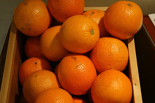 Unlike the other fruits we never brought oranges from outside. We grow an orange tree in the middle of our back yard. It was planted by my Ammai. Some oranges are sour while most others are sweet.